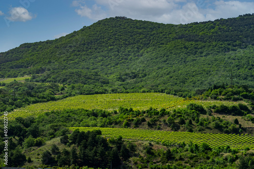 © vvicca, Naklejka premium Landscape with a view of the vineyard