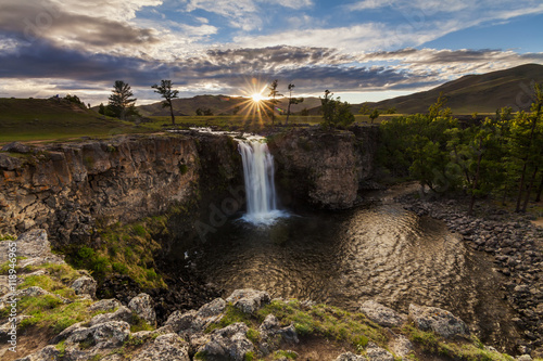© Anton Petrus, Fototapeta premium Landscape with a view of the waterfall and beautiful sky. Mongol
