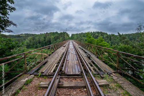 © madredus, Fototapeta premium Landscape with an old railway bridge.