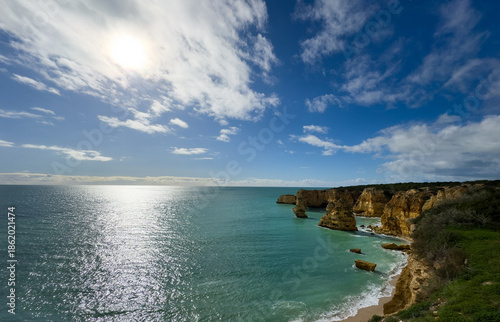 Fototapeta premium Landscape with beautiful Praia da Marinha, one of the most famous beaches of...