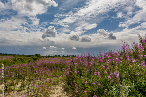 Obraz premium Landscape with blooming Ivan-tea.