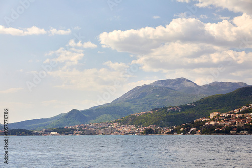 Fototapeta premium Landscape with blue sea and green mountains