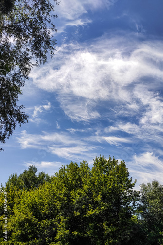 © ir1ska, Obraz premium Landscape with blue sky and trees vertical format