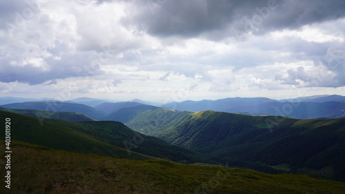 © Sergey, Fototapeta premium landscape with clouds and fog in carpatia