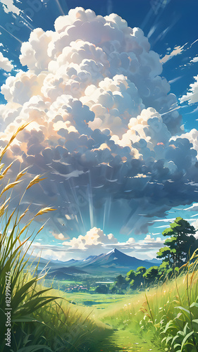 Fototapeta premium landscape with clouds and sun