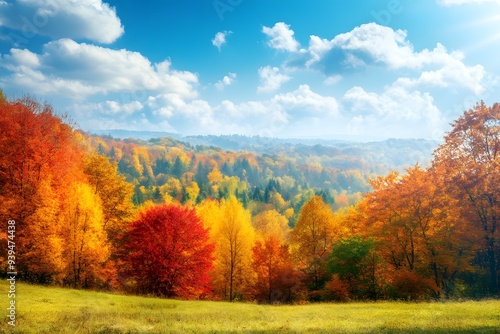 © Pacharee, Fototapeta premium landscape with colorful Autumn forest. Fall season.