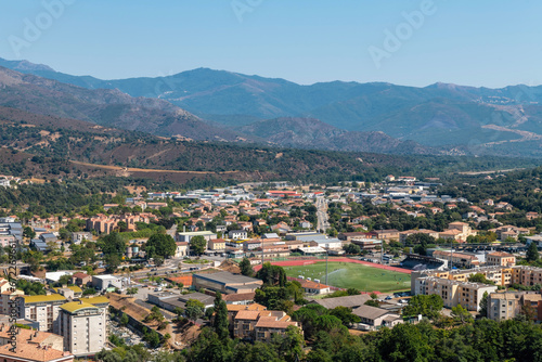 Fototapeta premium Landscape with Corte, Corsica island, France