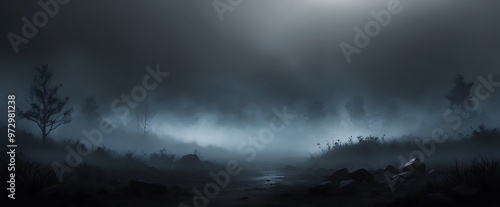 © ArtificialGen, Fototapeta premium landscape with dark scene with misty background
