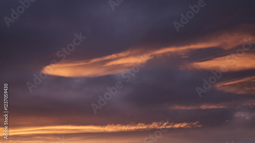 Fototapeta premium Landscape with dramatic clouds over the ocean, orange sunset