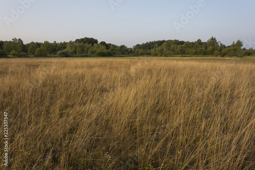© Petr, Obraz premium Landscape with enlightened dry grass that has a golden color.