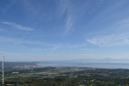 © Yujun, Fototapeta premium Landscape with field and ocean in Hokkaido, Japan