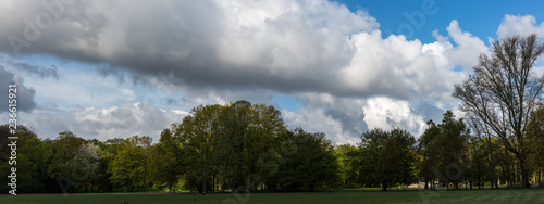 Obraz premium Landscape with field, trees and clouds