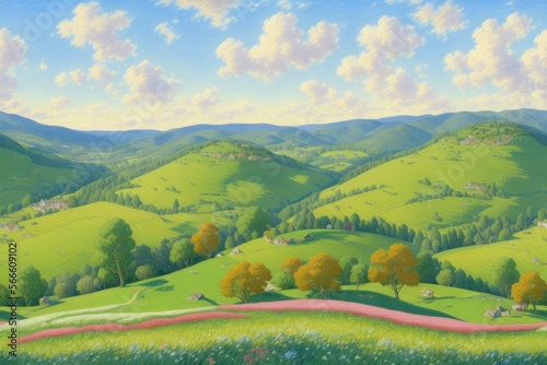 © Cad3D.Expert, Fototapeta premium landscape with flowers, seamless, tileable pattern, CFC2023SPR