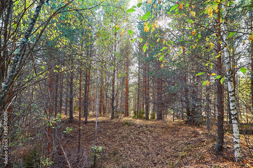 Obraz premium Landscape with forest and trees in it in summer or autumn day.