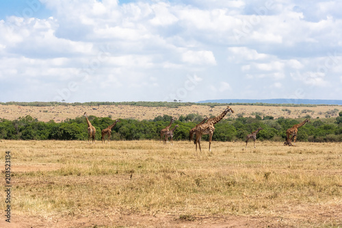 © Victor, Naklejka premium Landscape with giraffes. Kenya, Africa