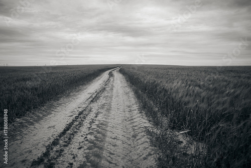 © Marius Burcea, Fototapeta premium landscape with green autumn wheat field in spring sunlight on the field