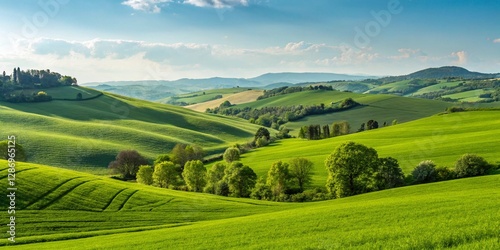 Fototapeta premium landscape with green field and blue sky