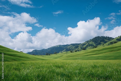 © HORA STUDIO, Fototapeta premium Landscape with green field and blue sky