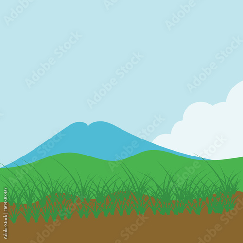 © bady, Fototapeta premium landscape with green grass and blue sky