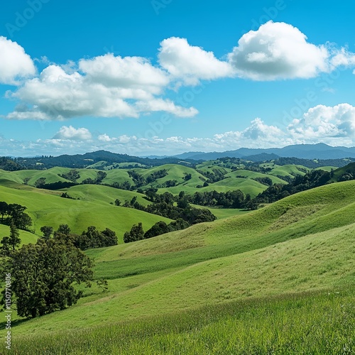 © Наталья Игумнова, Fototapeta premium landscape with green grass and blue sky illustration