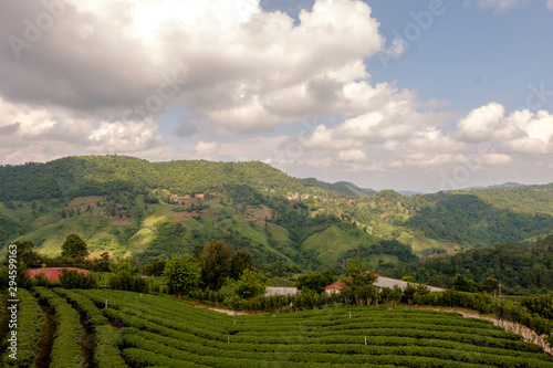 © WS Studio 1985, Fototapeta premium landscape with green hills and blue sky