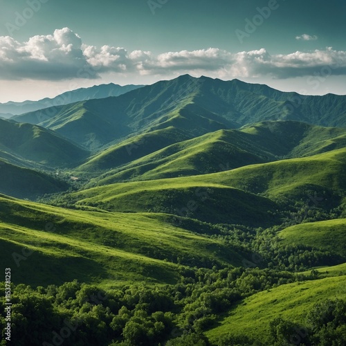 Fototapeta premium Landscape with green mountains. Mountainous terrain. Abstract nature...