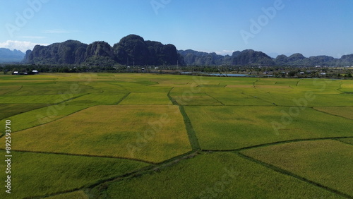 © Herwin Bahar, Fototapeta premium landscape with green ricefield and blue sky