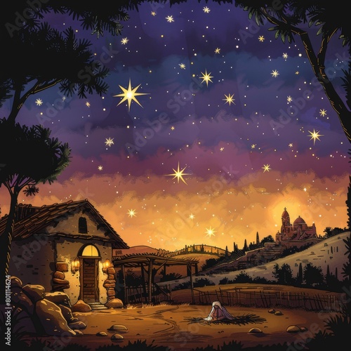© Anton, Naklejka premium landscape with house and sunset