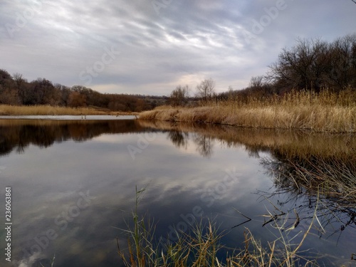 Fototapeta premium landscape with lake and clouds