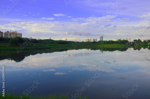 Fototapeta premium Landscape with lake and clouds in Jakarta