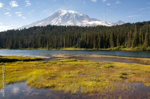 © sangwon, Fototapeta premium landscape with lake and mountains