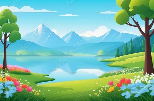 © Leshtana, Fototapeta premium landscape with lake and mountains