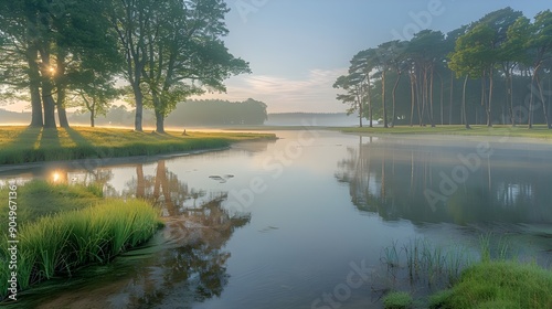 © manapaund, Fototapeta premium landscape with lake and mountains