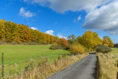 Fototapeta premium landscape with meadow, path and trees in autumn