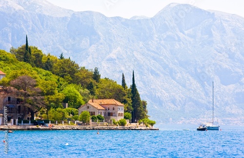 © Irina Papoyan, Naklejka premium Landscape with mediterranean town - Perast, Kotor bay (Boka Kotorska), Montenegro