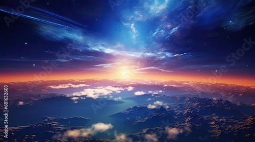 Naklejka premium Landscape with Milky way galaxy.Sunrise and Earth view