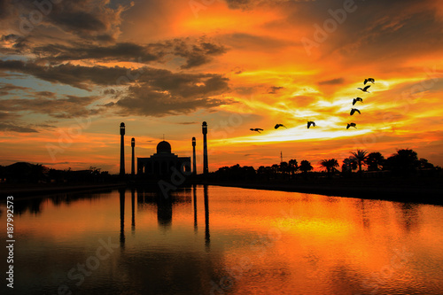 Obraz premium Landscape with mosque in Thailand,beautiful sunset before storm