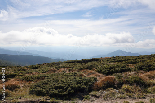 Fototapeta premium Landscape with Mount Hoverla hanging peak of the Ukrainian Carpathians...