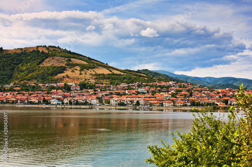 Fototapeta premium Landscape with mountain, houses and water