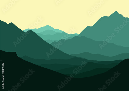 © Fajarhidayah11, Naklejka premium Landscape with mountains abstract. Vector illustration in flat style.