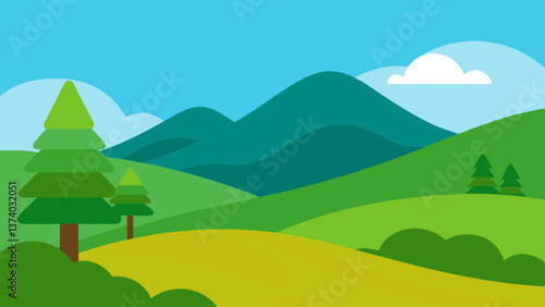 © Nahid_17, Obraz premium landscape with mountains and blue sky