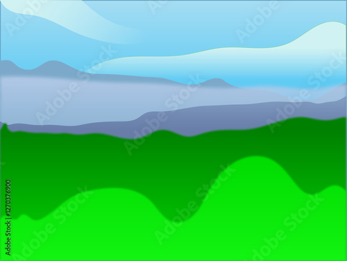 © Deni, Obraz premium landscape with mountains and clouds