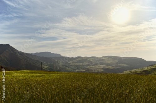 © Anas, Fototapeta premium landscape with mountains and clouds and sky