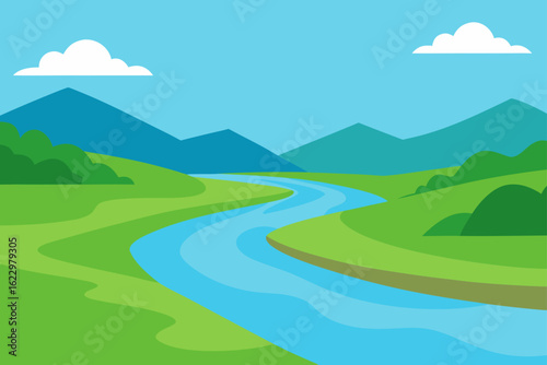 © sushanto, Fototapeta premium landscape with mountains and hills