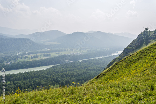© Sotnikov_EM, Naklejka premium landscape with mountains and river