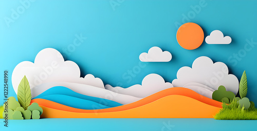 © Oksana_Latysheva, Obraz premium Landscape with mountains and sea waves in paper cut style
