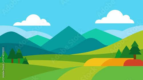 © Nahid_17, Obraz premium landscape with mountains and trees