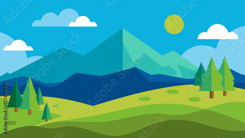 © Nahid_17, Obraz premium landscape with mountains and trees