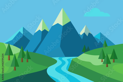 © Jibon, Obraz premium landscape with mountains and trees