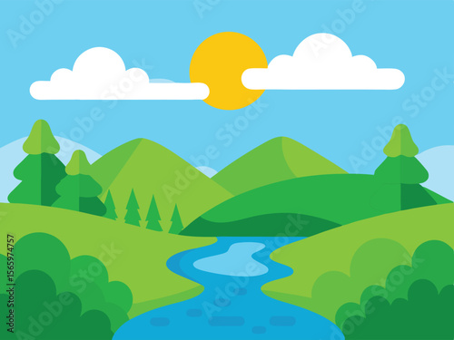 © Chayonika, Obraz premium landscape with mountains and trees